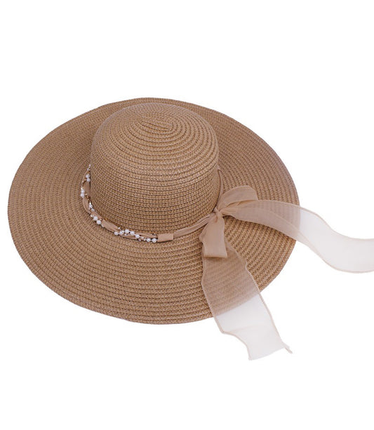 Chiffon Pearl Ribbon Sun Hat