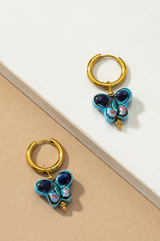 Ceramic Butterfly Huggie Earrings