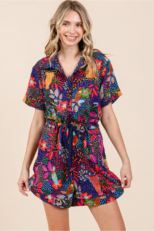 Navy & Bold Printed Romper