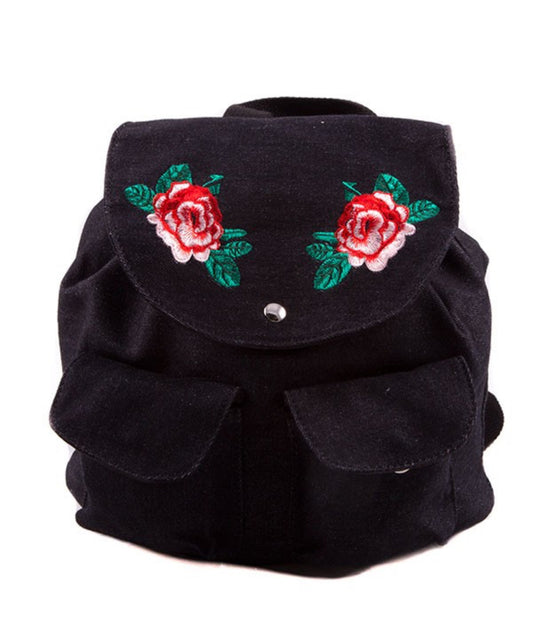 Rose Embroidered Denim Backpack