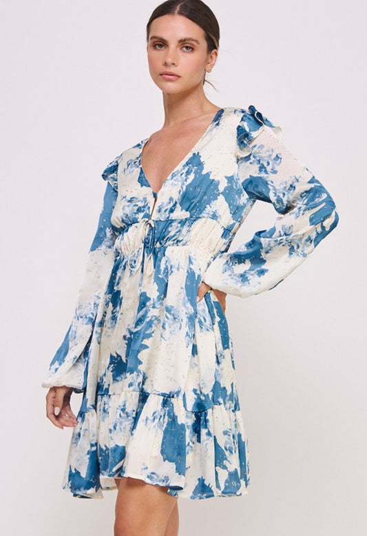 Blue Marbled + Gold Accent Silk DressRegular price $64.00 USDRegular priceUnit price per-
