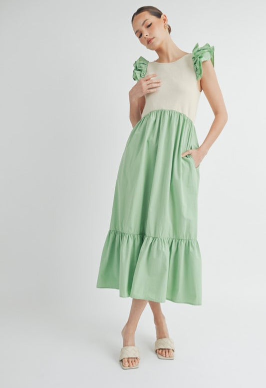 Green Knit Contrast Flutter Sleeve DressRegular price $68.00 USDRegular priceUnit price per-
