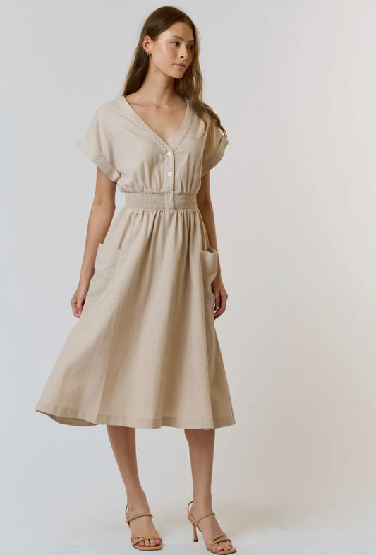 Sold outNatural Smocked Waistline Dress