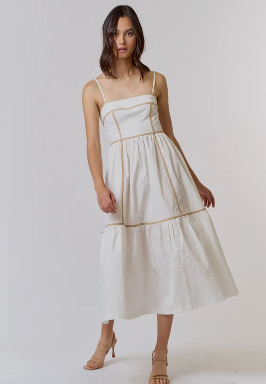 Sold outOff White Contrast Detail Midi Dress
