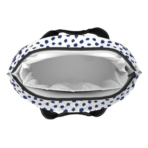 - Interior pockets: one full-length zipper pocket, one full-length elastic slip pocket, two small elastic slip pockets (one on each side)