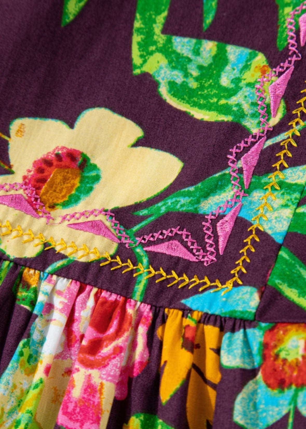 Embroidered Detail Floral Contrast Top