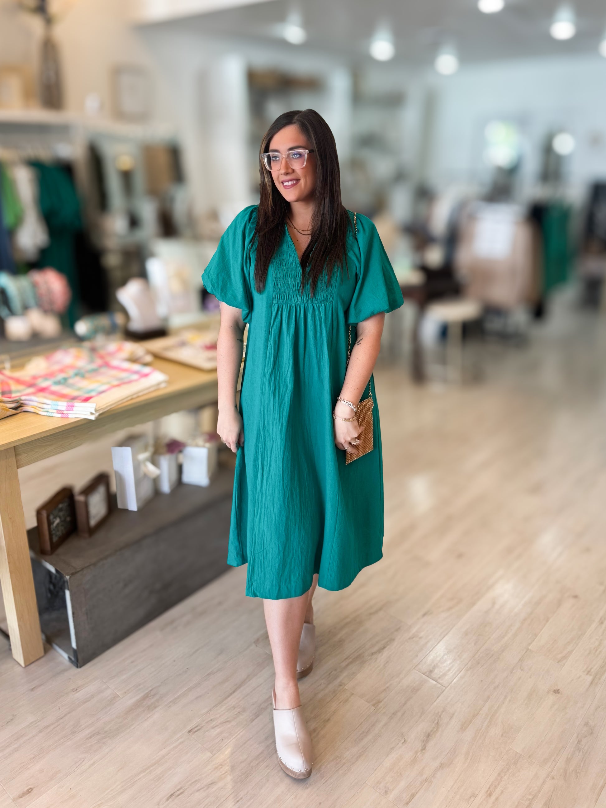 Jade Smocked Front Yoke Midi Dress