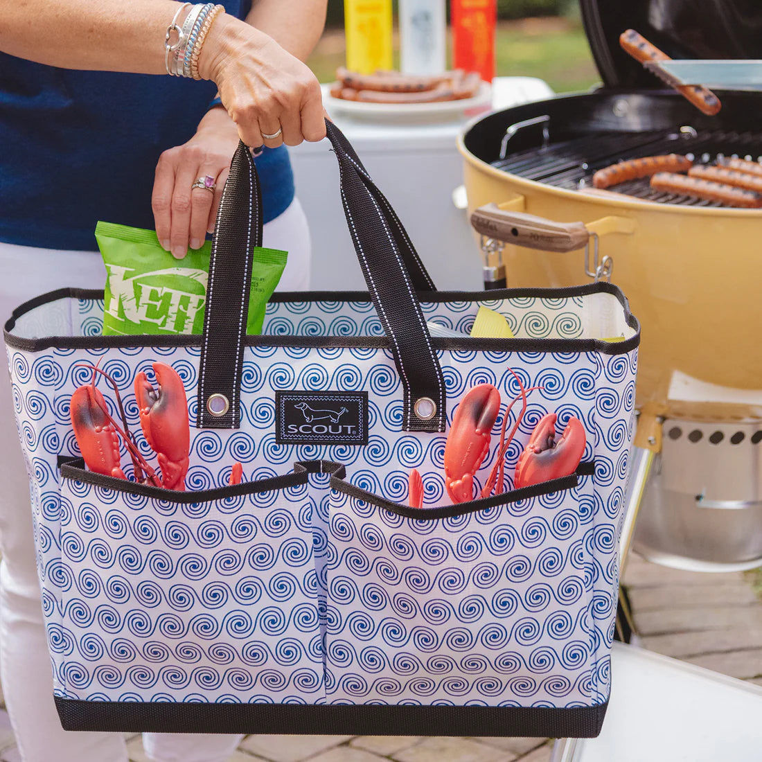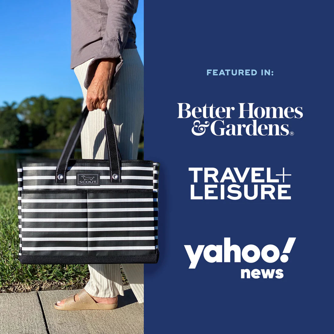 OUR LARGEST POCKET TOTE BAG. With 5 pockets in all, the Pocket Tote Large is perfect for keeping you organized on the go. This durable, lightweight, structured bag is well-suited for multiple uses. Teachers and nurses love it for work. Town & Country called it "the beach bag you've always dreamed of." Moms rave about it being a great weekend bag or carry-on. For a smaller version, check out the Pocket Tote Medium.